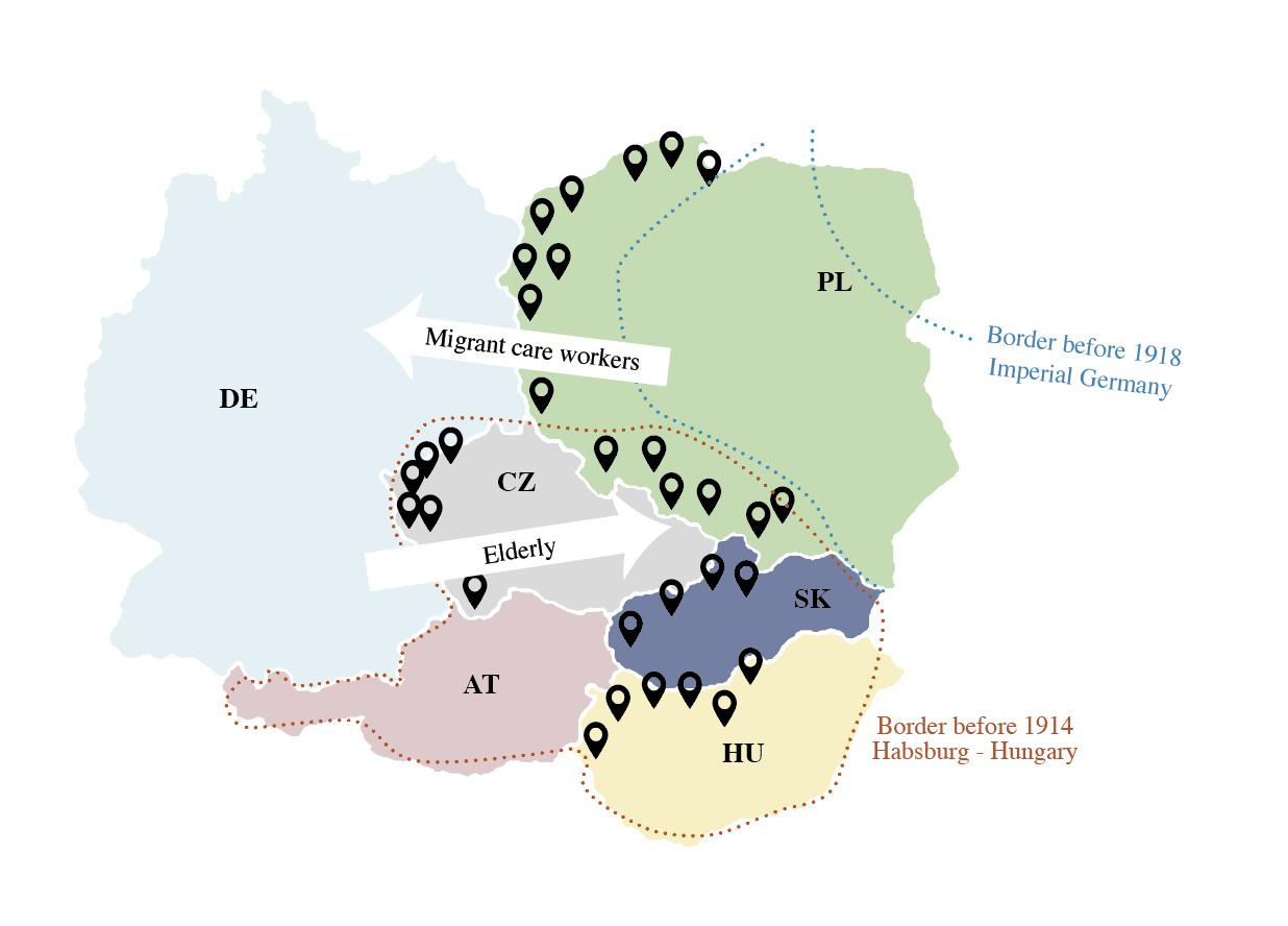 De zorg wordt in veel West-Europese landen steeds onbetaalbaarder en er is een groot tekort aan medewerkers. Een oplossing is zorgpersoneel uit Oost-Europa te rekruteren als inwonende verzorger. Kristine Krause richt zich in haar project op het omgekeerde fenomeen, waarin niet de zorgverlener maar de zorgbehoevende verplaatst wordt, naar een plek waar de zorg goedkoper is. Dit door sommigen als 'geriatrisch kolonialisme' omschreven fenomeen kan gezien worden als een extreem voorbeeld van de vercommercialisering van de zorg. Krause en haar team gaan zorgcentra in Polen, Tsjechië, Slowakije en Hongarije onderzoeken; deze centra bieden zorg voor patiënten uit Oostenrijk en Duitsland tegen zo’n derde van de kosten in vergelijking met de thuislanden. Wat doet een dergelijke verplaatsing van de zorg met de betrokken mensen en plaatsen? Naast etnografische onderzoek van het dagelijks leven in de verzorgingshuizen, bestudeert het team zowel de relatie tussen zorgondernemers en staatsverzekeringen als de geschiedenis van plaatsen en regionale migratie.